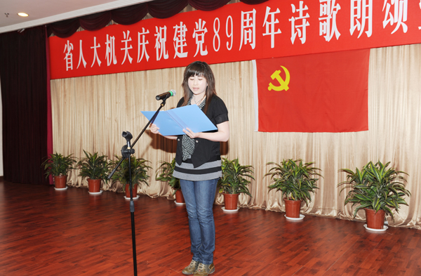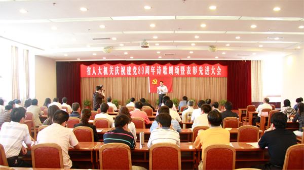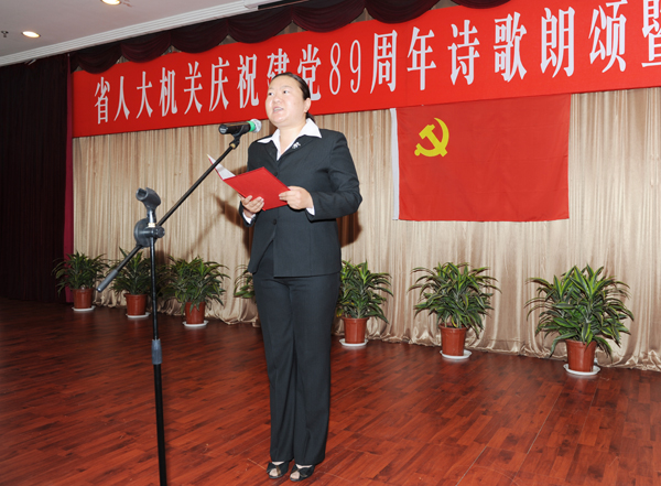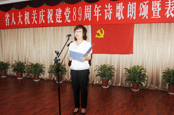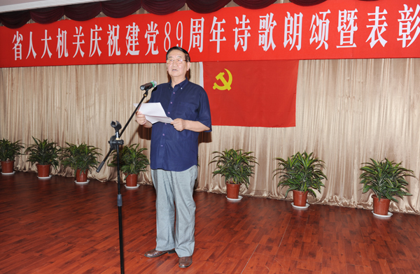 6月24日下午,省人大常委会机关举办庆祝建党89周年诗歌朗诵暨表彰先进大会。省人大常委会副主任桑杰,常委会各位副秘书长、各专委、办公厅、各工委(办)的负责同志与机关全体党员、干部、职工参加了大会。省人大常委会副主任桑杰在大会上作了重要讲话。