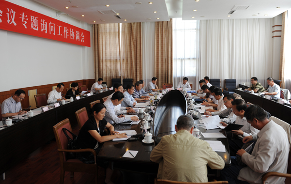 会上,省人大环资委主任委员曹多珠同志通报了专题询问工作的各项准备情况,介绍了询问拟选题主要内容;与会的各相关部门同志就做好专题询问的准备工作进行了讨论。蔡德贵秘书长就省政府及相关各部门和省人大各部门之间做好沟通协调和配合,确保专题询问工作顺利进行,提出了意见。