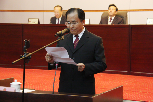 省高级人民法院副院长拟任人选吴毛旦同志作了任前发言。