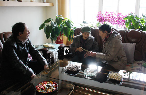1月13日下午,穆东升副主任赴平安县巴藏沟回族乡李家村看望慰问结对帮扶贫困户赵得发老人,给老人送去了慰问金和面粉等生活用品。赵得发现年77岁,早年丧妻,体弱多病,与自己的孤儿孙子共同生活,家境贫寒。近年来,在穆东升副主任的关心、帮扶下,生活条件有了明显改善。当穆东升副主任再次来到老人家中,老人紧握穆东升副主任的双手流着热泪感激地说,感谢党和政府,感谢穆主任多年来对我们爷孙俩的关心关爱!