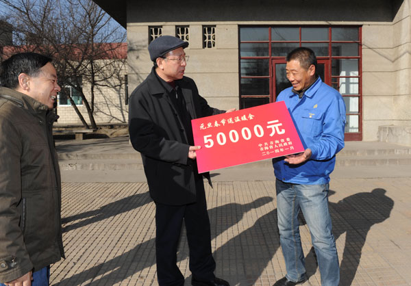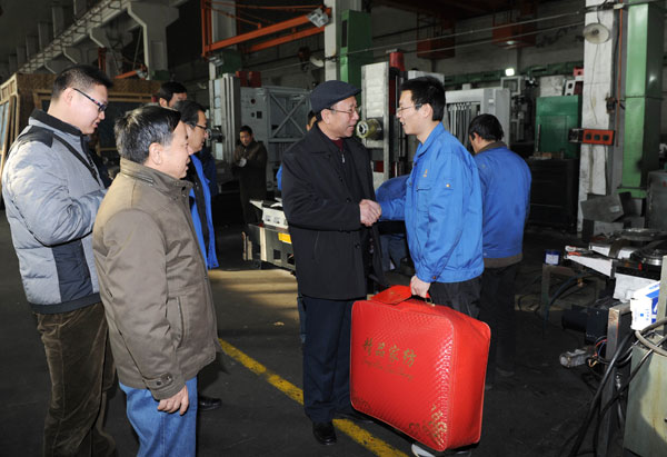 1月15日下午,穆东升副主任在省总工会等有关领导陪同下,到青海一机数控机床有限责任公司慰问企业和困难职工,给企业和困难职工送去慰问金、棉被等,并到车间班组参观了解企业生产和职工生活情况。