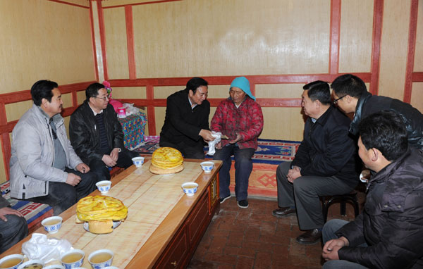 1月18日,省人大常委会党组副书记、副主任邓本太赴贵德县尕让乡阿言麦村,看望慰问扶贫联点户卓玛才让,给卓玛才让一家送去了新春的祝愿。在卓玛才让家,邓本太副主任与县、乡领导和村干部、村民群众进行座谈,详细了解群众的生产生活情况、困难群众生活补助、养老保险医疗保险情况,向大家讲解有关政策,解疑释惑,并希望基层干部充分了解国家和省上的有关政策规定,积极带领各族群众致富奔小康。