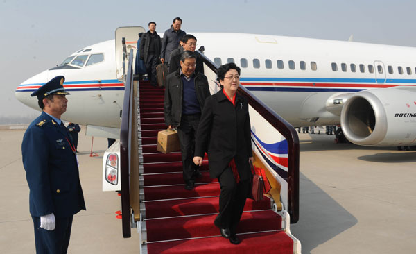 3月2日上午,我省十二届全国人大代表肩负着全省570万各族人民的重托,满怀激情,乘机抵达北京,出席将于3月5日召开的十二届全国人大二次会议。 代表们表示,将以饱满的精神和高度的责任感,聚精会神开好大会,认真履行宪法和法律赋予的神圣职责,不负全省各族人民的期待。
