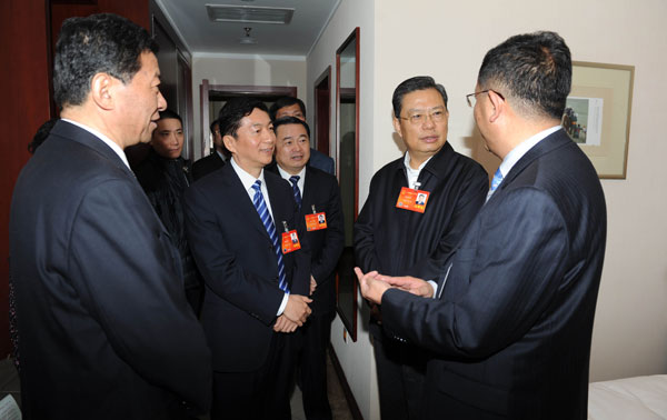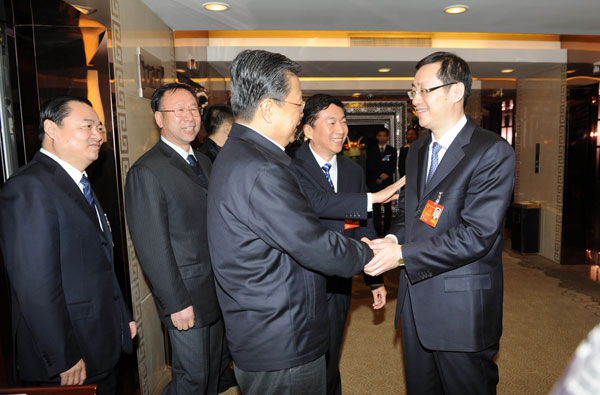 3月4日下午,中共中央政治局委员、中央组织部部长赵乐际来到青海代表团驻地,看望出席十二届全国人大二次会议的青海团代表。