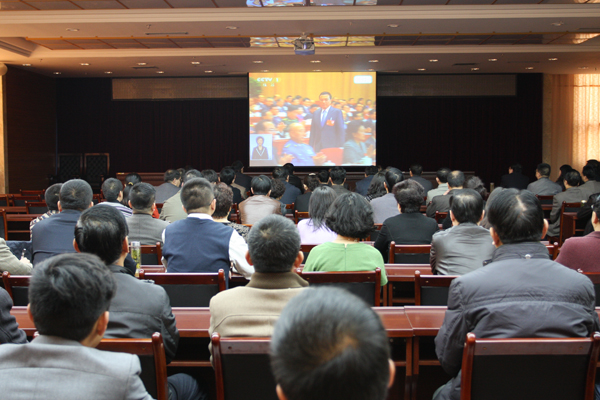 省人大常委会机关集体收听收看十二届全国人大二次会议开幕盛况