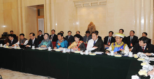 拜秀花代表说,报告亲和力强,表达了民声民意,特别提出继续加大教育资源向中西部和农村倾斜,是对群众关切的回音,是教育工作者的福音。近几年,我省教育事业得到长足发展,办学条件不断改善,保障人群不断扩大,教育资源向农牧区倾斜,各类教育协调发展,发展成果惠及更多家庭,但还存在一些困难,需要国家大力支持。建议:1、帮助青海解决中小学校标准化建设资金缺口问题,全面改善贫困地区义务教育薄弱学校基本办学条件。2、大力发展民族地区职业教育,协调加强对口支援工作,帮助我省藏区建设6所中等职业学校,加强特色专业建设。3、继续加大对我省中小学教师周转宿舍建设的投入力度,确保“十二五”期间全面完成工程建设规划确定的目标,使教师静心教书、潜心育人。4、加大对学前教育的帮扶力度,加快藏区双语幼儿园建设,将我省学前一年资助政策扩大至三年。