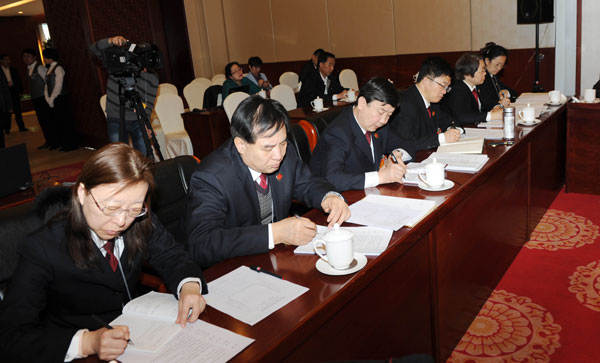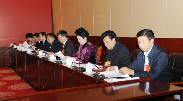 3月11日,我省代表团审议两高报告。骆惠宁、郝鹏、王晓、穆东升、任建新、诺卫星、李小松、邓晓辉、尼玛卓玛、王玉虎、何峰、程苏、王予波、诺尔德、拜秀花、宗贻平审议发言。最高人民检察院副检察长姜建初到会听取意见。省高级人民法院院长董开军、省人民检察院检察长王晓勇列席会议。