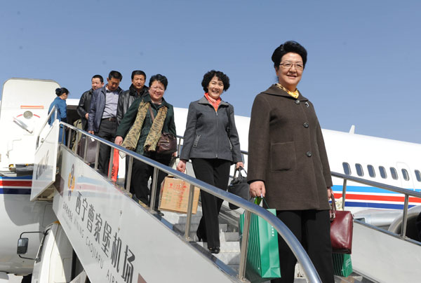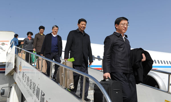 出席十二届全国人大二次会议的我省全国人大代表,在圆满完成大会各项议程后,于3月14日乘飞机返回西宁。