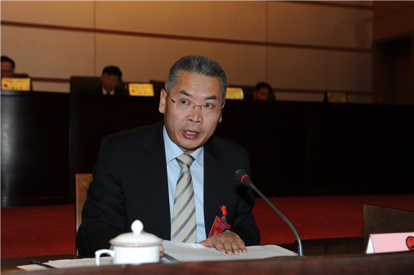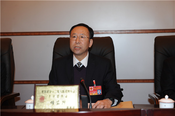 省人大常委会副主任穆东升主持第一次全体会议并向与会同志传达了十二届全国人大二次会议精神