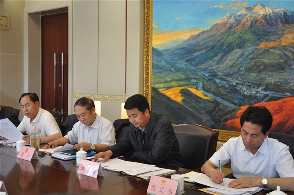 6月30日下午,由省人大财经委组织,调研组一行在胜利宾馆召开了财政水利资金投入和使用工作情况汇报会,会议由省人大常委会副主任曹宏主持,省人民政府副省长严金海出席会议,省人大财经委主任委员闫宝亮、副主任委员韦志义及省财政厅、省发改委、省水利厅、省环保厅、省农牧厅、省国土厅、省林业厅等相关部门负责同志参加了会议。