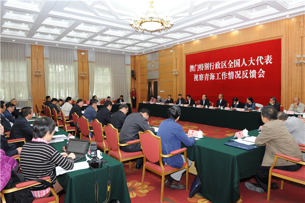 视察组对青海省近年来的发展及取得的成就给予充分肯定,一致表示,青海省委、省政府全力以赴保增长、调结构、惠民生、促和谐,生态保护取得新成效,循环经济发展迈出新步伐,民族团结进步有了新进展。代表们建议,青海省在目前发展基础上,应进一步加大对生态资源、盐湖资源、新能源产品、特色动植物资源的保护和投入力度;加大对民族文化、青海旅游的宣传和发掘力度;在培养本土优秀人才的同时,积极创造条件,引进和留住外来优秀人才,为青海发展提供智力支持。代表们表示将持续关注青海发展,希望澳门和青海加强商贸、文化等领域的合作,互利双赢,为两地和国家的经济发展做出贡献。