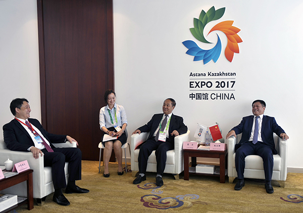 在世博会期间,曹宏副主任和张汉晖大使与哈萨克斯坦国际商会主席伊莱诺夫就青海地理环境、生态地位、资源优势以及经贸合作互补潜力,农牧业、旅游业、藏医藏药等领域开展互利合作进行了深入交流。