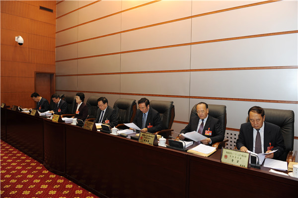会议听取了省人大常委会关于《青海省第十二届人民代表大会常务委员会关于青海省第十三届人民代表大会代表名额、分配和选举问题的决定(草案)》的说明,省人大法制委员会关于《青海省实施〈中华人民共和国村民委员会组织法〉办法(草案)》审议结果的报告,省人大常委会法制工作委员会关于《青海省人民代表大会常务委员会关于修改〈青海省人民代表大会常务委员会决定重大事项的规定〉的决定(草案)》的说明,省机构编制委员会关于《青海省行政许可监督管理条例(草案)》的说明,海西州人大常委会关于《海西蒙古族藏族自治州城镇管理条例》的说明,省人大常委会执法检查组《关于检查〈中华人民共和国食品安全法〉实施情况的报告》,省旅游发展委员会、省人力资源和社会保障厅、省国土资源厅分别作关于办理省人大代表建议工作情况的报告。