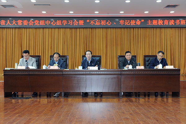 6月17日,省人大常委会党组中心组学习会暨“不忘初心、牢记使命”主题教育读书班举行。省人大常委会党组书记张光荣、副书记马伟,党组成员吴海昆、贾应忠及机关处级以上党员干部参加。常委会副主任刘同德列席,张光荣主持并讲话。
