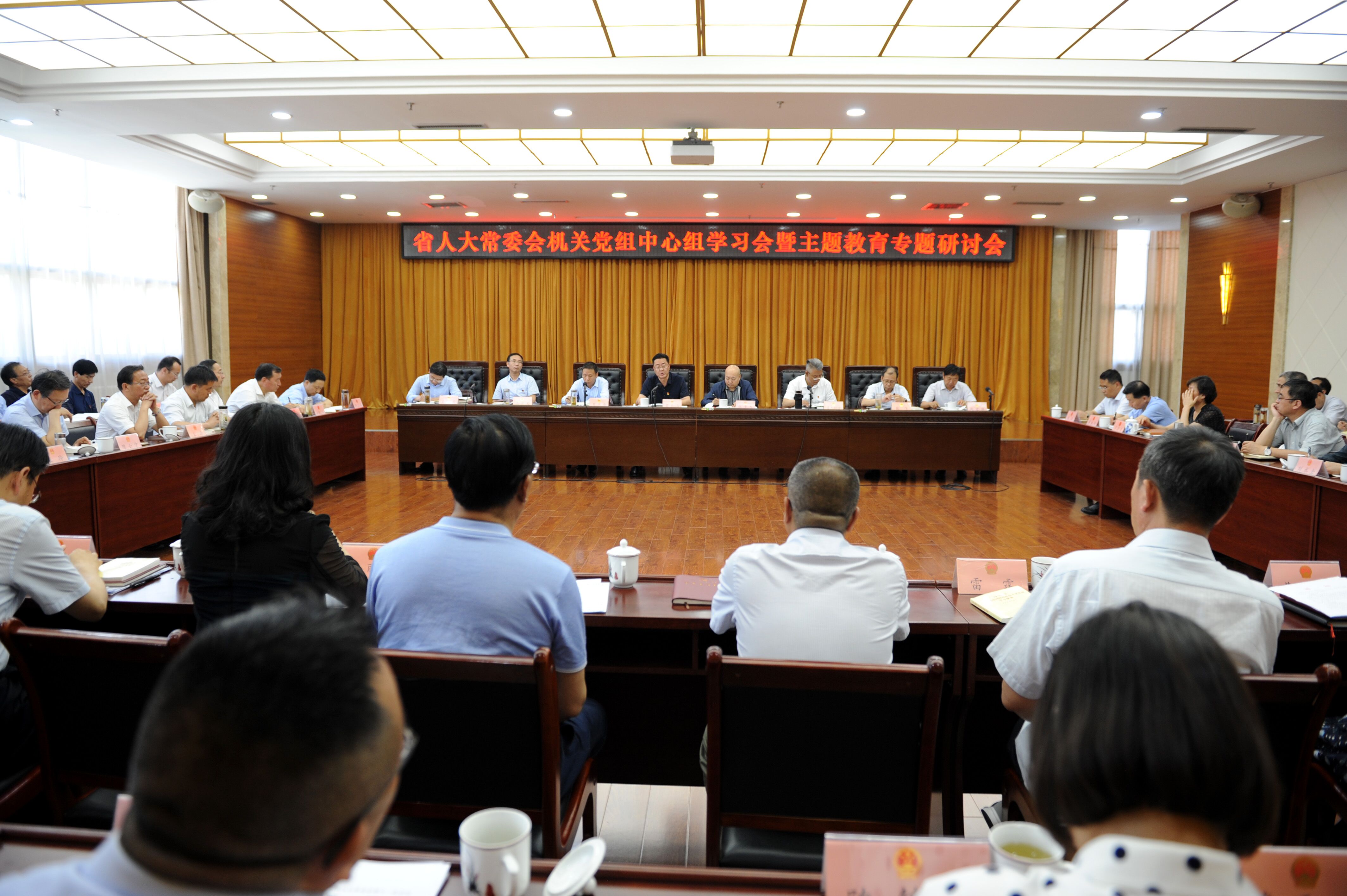 7月25日,省人大常委会机关党组中心组学习会暨“深入学习习近平总书记重要讲话,牢记初心使命、推进自我革命”和“解放思想、改革创新、锐意进取、当好新时代的答卷人”专题研讨会举行。省人大常委会机关党组书记、秘书长贾应忠主持并提出要求。机关党组成员、各专工委副主任、办公厅巡视员、副巡视员以及处级领导干部参加。省委主题教育第二巡回指导组有关同志到会指导。