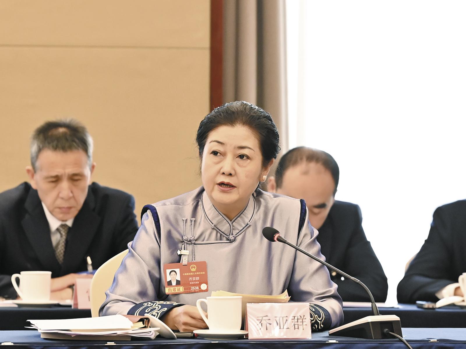 全国人大代表乔亚群回答记者提问。