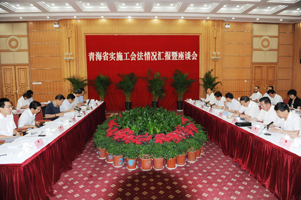 7月28日-8月2日,全国人大内司委组织工会法执法调研组,由全国人大内务司法委员会副主任委员刘振华率领,来青海进行调研。省委书记、省人大常委会主任强卫,省人大常委会副主任刘晓,副省长张建民会见了调研组全体成员,省人大常委会副主任郭汝琢陪同调研组进行了调研,副省长骆玉林向调研组汇报了我省贯彻实施工会法的情况。