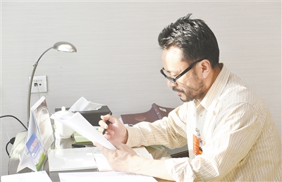 →李青委员认真修改发言材料,为青海发展建言献策。