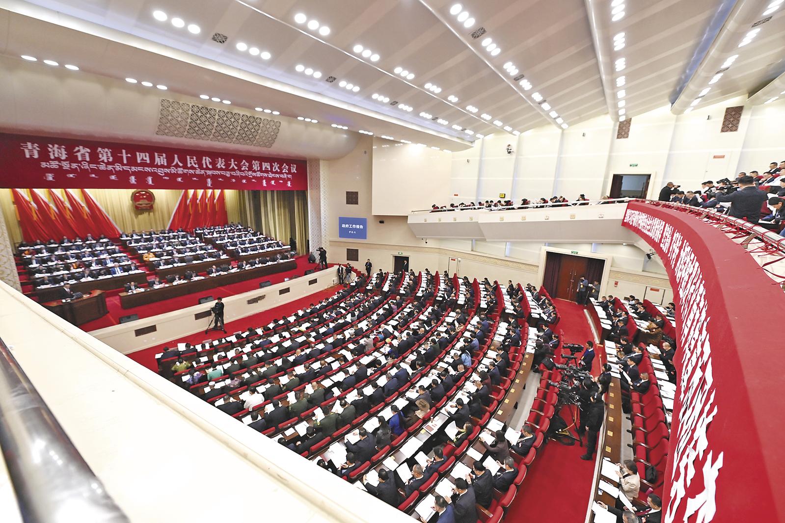 一月二十七日上午,青海省第十四届人民代表大会第四次会议在青海会议中心开幕。记者 张地委 祁国彪 王湘琳 摄