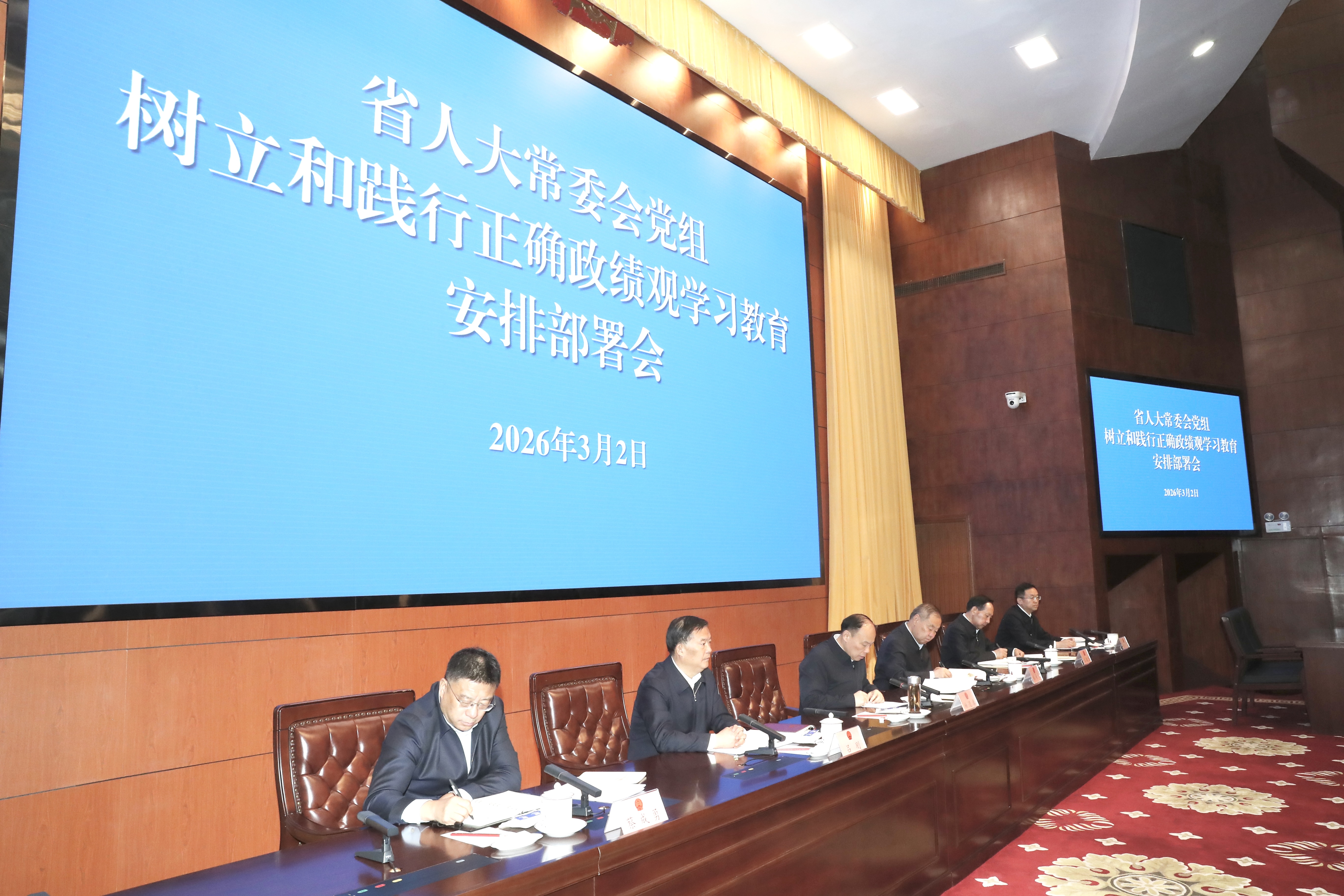 3月2日,省人大常委会党组召开树立和践行正确政绩观学习教育安排部署会,传达学习中央、省委党的建设工作领导小组会议精神,安排部署省人大常委会及机关开展树立和践行正确政绩观学习教育工作。省人大常委会党组书记、副主任杨逢春主持。张黄元、吕刚、王敬斋、蔡成勇、陈东昌及机关全体干部参加会议。
