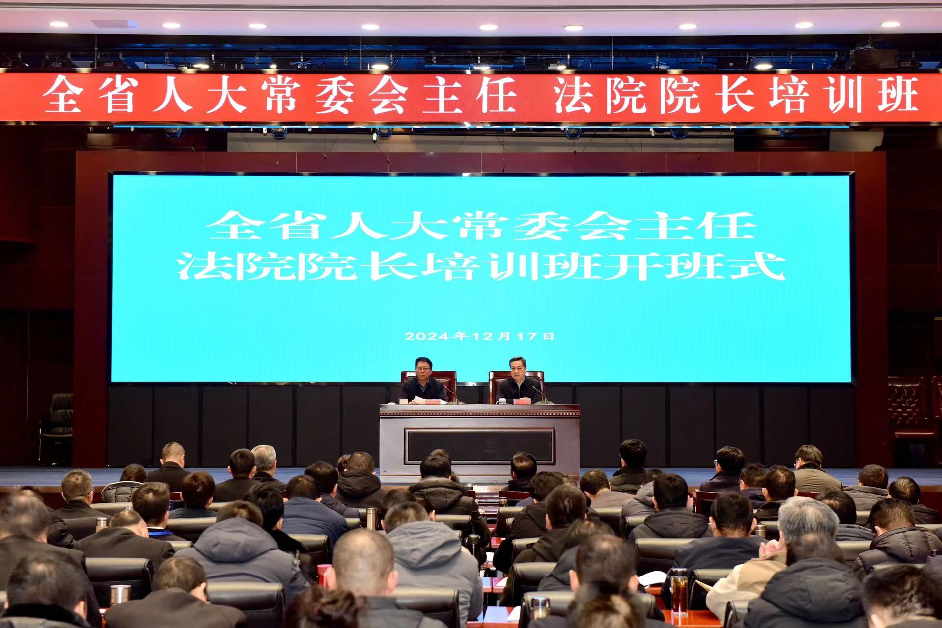 为深入学习贯彻党的二十大和二十届三中全会精神,认真践行习近平法治思想,积极探索坚持好、完善好、运行好人民代表大会制度在进一步加强地方立法和司法审判工作高质量发展中的青海实践,推动更高水平平安青海、法治青海建设,12月17日,由省人大常委会、省高级法院联合举办的全省首期基层人大常委会主任和法院院长培训班在西宁青海省法官学院开班。省人大常委会党组书记、副主任王黎明出席开班式并围绕“以习近平法治思想引领法治青海建设”为培训班全体学员作开班专题报告。省人大常委会党组成员、秘书长陈东昌,省人大监司委和常委会办公厅有关负责同志,省高级法院党组成员、院级领导、各部门负责人参加开班式。省高级法院党组书记、院长张泽军主持开班式。