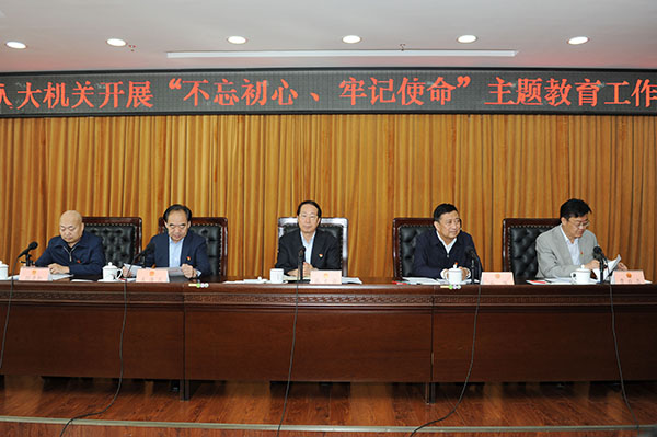 6月6日,省人大机关召开开展“不忘初心、牢记使命”主题教育工作会议。省人大常委会党组书记、副主任张光荣出席会议并讲话,党组副书记、副主任马伟,党组成员、副主任吴海昆,党组成员、秘书长贾应忠出席,省委巡回指导组负责同志莅会指导,省人大机关全体党员干部参加。