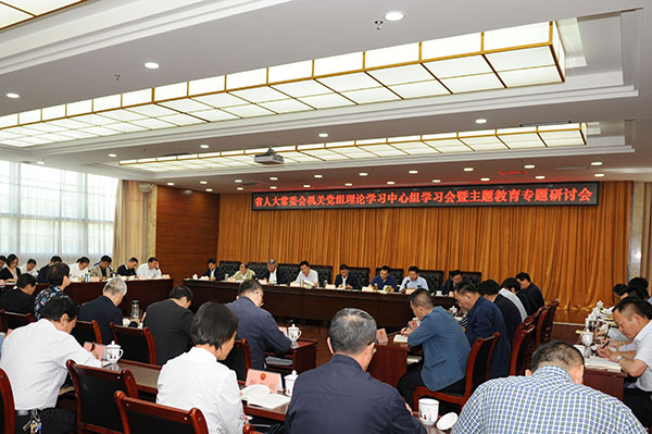 6月28日,省人大常委会机关党组中心组学习会暨“增强‘四个意识’、坚定‘四个自信’、做到‘两个维护’”专题研讨会举行。省人大常委会机关党组书记、秘书长贾应忠主持并讲话。机关党组成员、各专工委负责同志、办公厅巡视员、副巡视员以及处级以上党员、干部参加。省委主题教育第二巡回指导组马孝忠同志莅会指导。