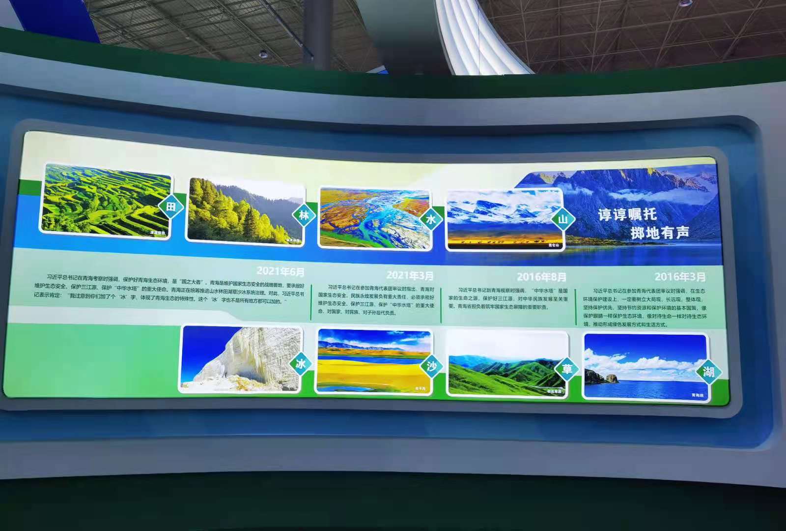 此次青洽会紧扣“开放合作·绿色发展”主题,以加快建设世界级盐湖产业基地,打造国家清洁能源产业高地、国际生态旅游目的地、绿色有机农畜产品输出地为主线,通过展览展示、项目洽谈、大会论坛等一系列活动,充分体现青海高质量发展定位。青海综合馆采用现代多媒体光影技术叠加传统图文、模型、展品等形式,集中展示学习贯彻习近平总书记近年来在全国“两会”期间参加青海代表团审议、来青考察和在庆祝中国共产党成立100周年大会上的重要讲话精神内容,从青海坚持生态保护优先、致力推进绿色高质量发展、扩大开放合作、构建和谐家园等方面,充分展示建设更加富裕文明和谐美丽新青海新成就。