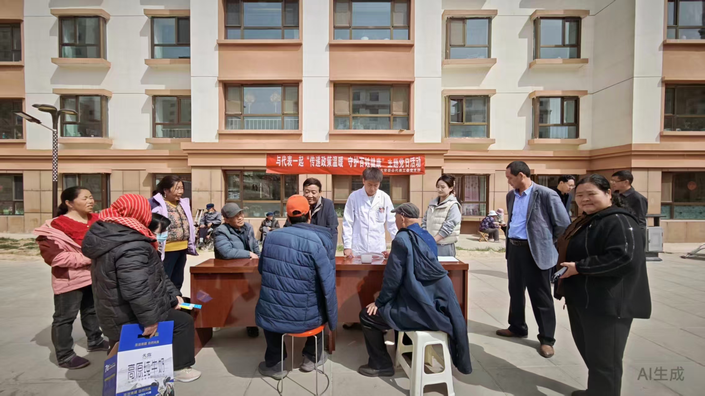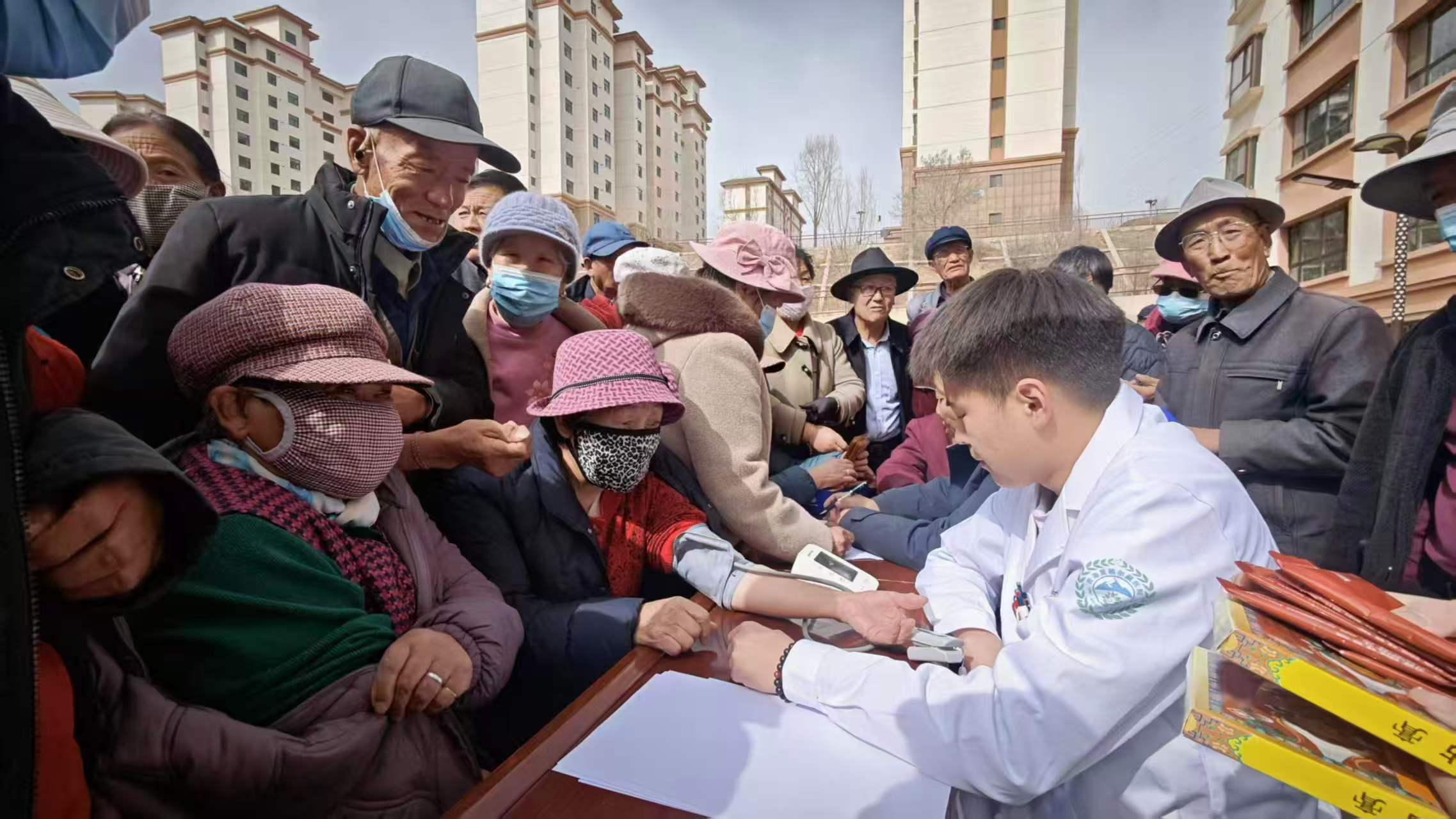 代表工委党支部请西宁夏格尔藏医院的医护人员,为梦圆居异地搬迁群众开展了免费义诊服务,提供健康问诊、健康咨询,给予诊疗建议和用药指导,并为群众免费发放消疼贴膏等价值10000余元的药品,以实际行动传递关怀、守护健康,深受广大基层群众的欢迎和赞誉。
