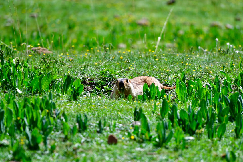 这是在青海省玉树藏族自治州杂多县昂赛乡境内拍摄的旱獭(6月21日摄)。新华社记者 张龙 摄