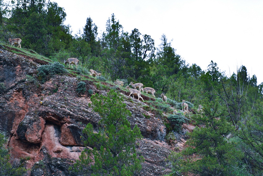 这是在青海省玉树藏族自治州杂多县昂赛乡境内拍摄的一群岩羊(6月21日摄)。新华社记者 张龙 摄
