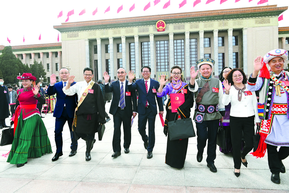 3月11日下午,十四届全国人大二次会议圆满完成各项议程后,在人民大会堂胜利闭幕。代表们意气风发走出人民大会堂。记者 张地委 摄