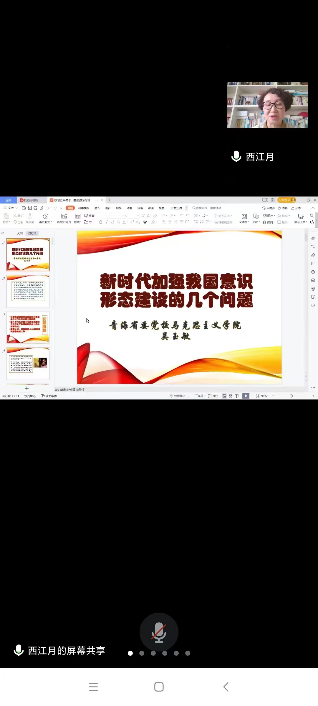 近日,省人大常委会办公厅线上举办2022年意识形态工作专题讲座,邀请省委党校马克思主义学院院长吴玉敏教授就《关于加强我国意识形态建设的几个问题》进行讲授,机关党员干部职工50余人参加。