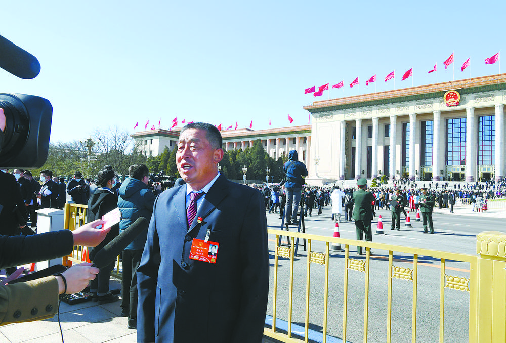 十三届全国人大五次会议开幕大会后,毕生忠代表接受媒体记者采访。 记者张地委 摄