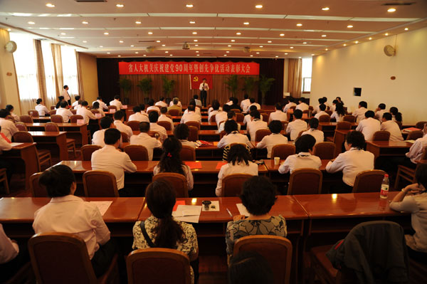 6月20日,省人大常委会机关召开庆祝建党90周年暨创先争优活动表彰大会图为大会场。