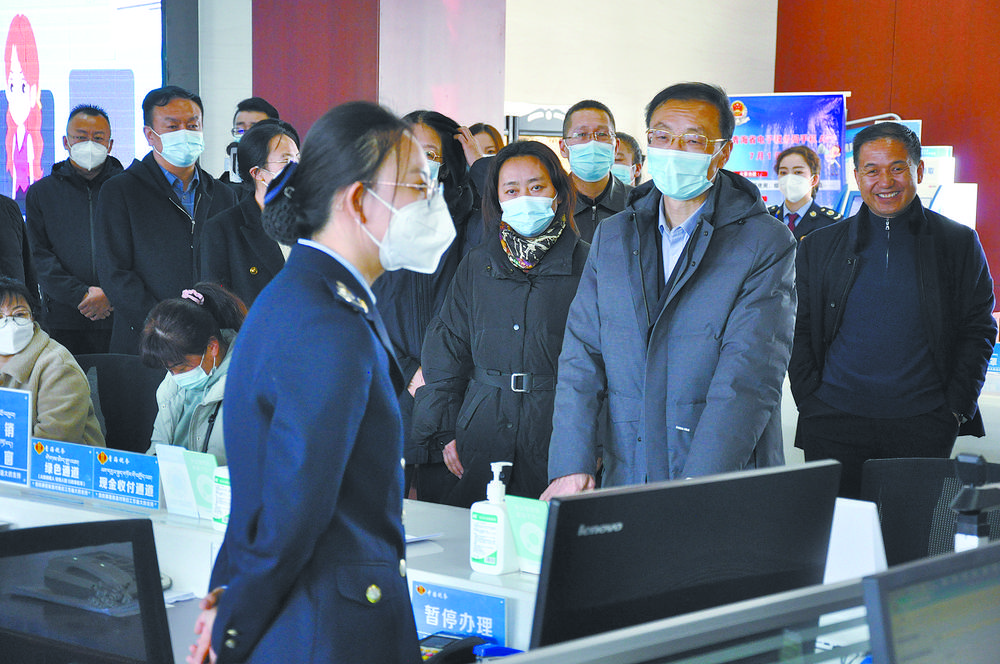 执法检查组在海北州政务服务大厅实地检查