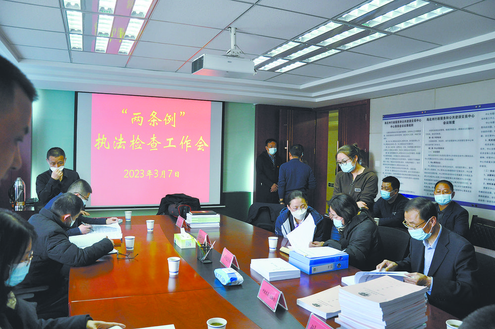 省人大常委会执法检查组检查相关部门贯彻“两条例”情况资料