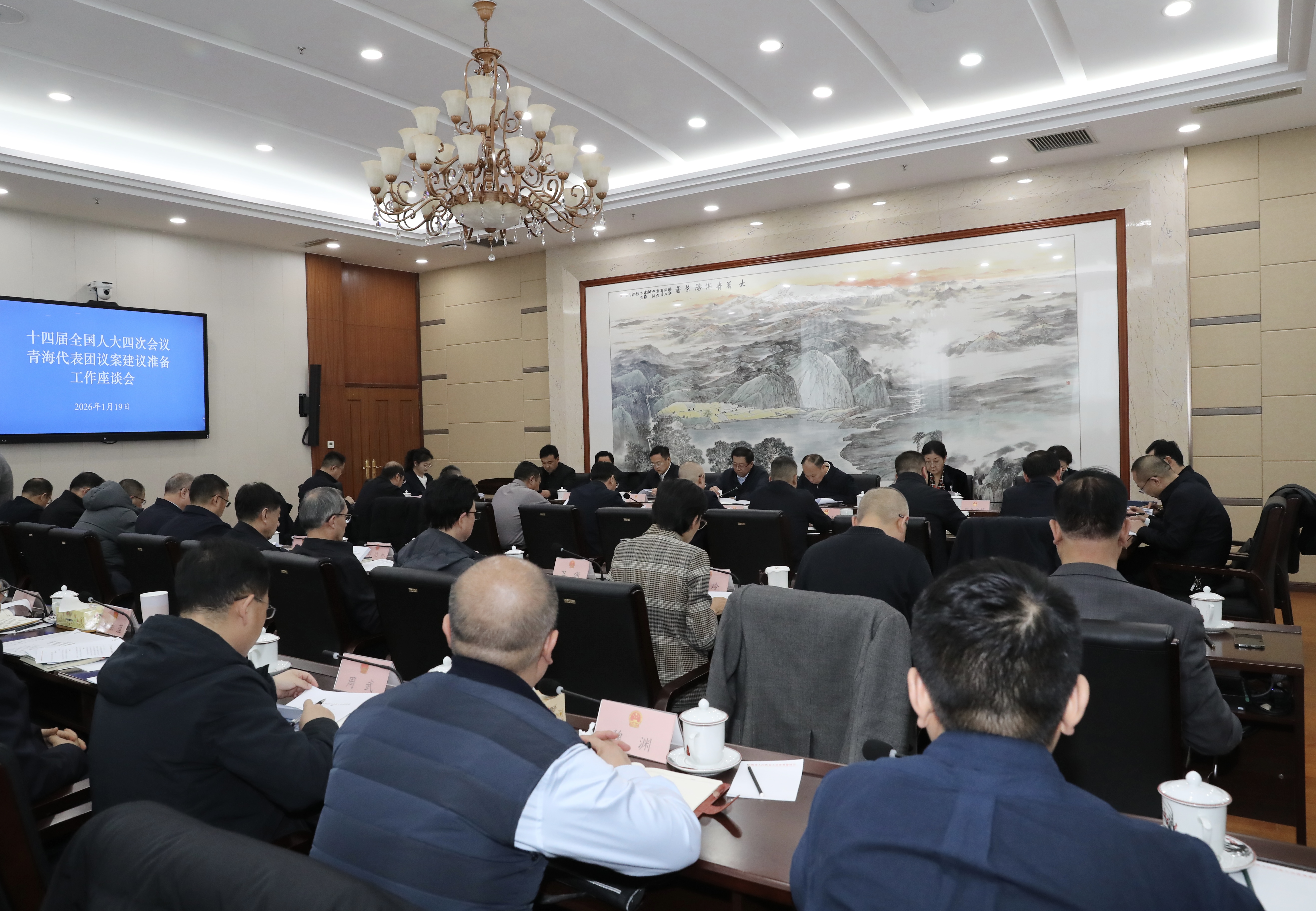 1月19日,省人大常委会组织召开十四届全国人大四次会议青海代表团议案建议准备工作座谈会,对省政府相关部门提供的议案建议素材进行集中讨论。全国人大代表马世功、马福昌、毕生龙、乔亚群、夏吾卓玛、郭金萍、董全民、蒋志刚参加,会议就绿色算力、产业“四地”建设、养老服务、基础设施建设、包虫病防治等方面的议案建议选题进行了研讨交流,为全国人代会青海代表团提出高质量的议案建议奠定坚实基础。全国人大财政经济委员会委员、省人大常委会党组书记、副主任王黎明出席并讲话,常委会党组副书记、副主任杨逢春主持会议。